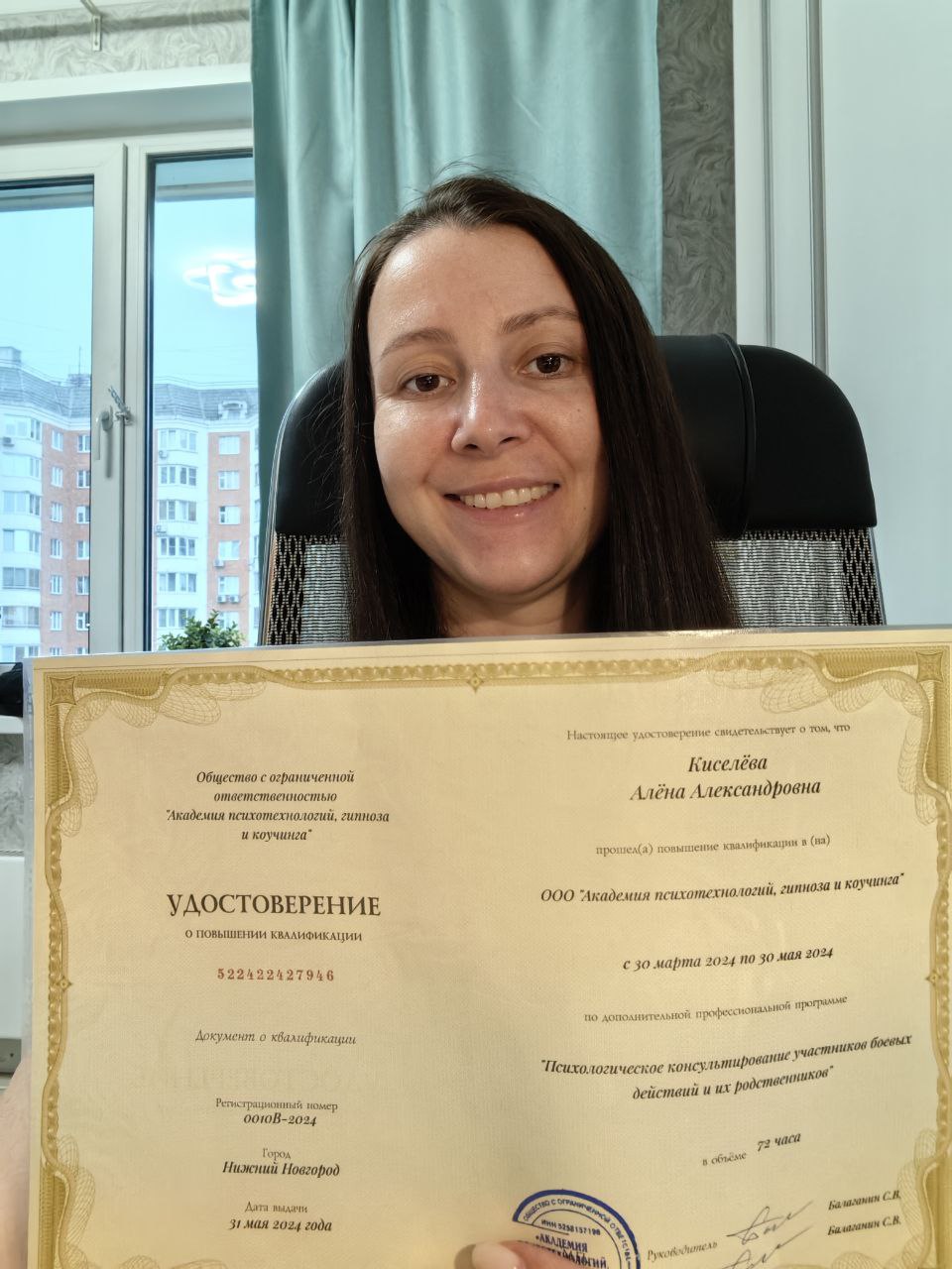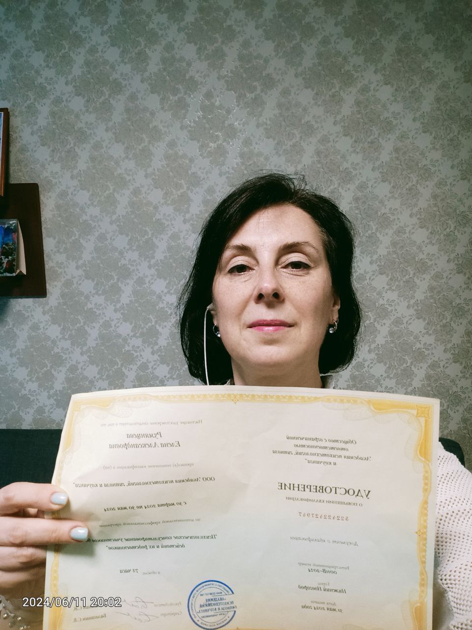 Документы о прохождении курса: Удостоверение о повышении квалификации от Академии психотехнологий, гипноза и коучинга на 72 часа